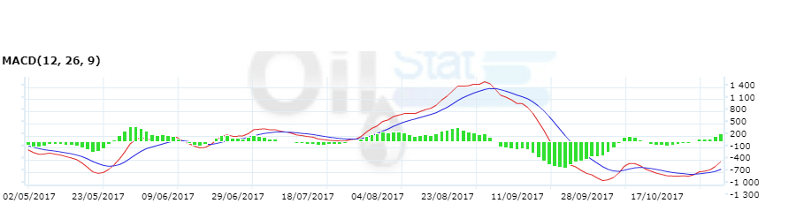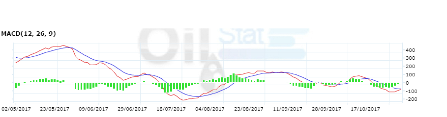 Рынок находится в падающем тренде на протяжении 10 дней. Индикатор MACD  поддерживает тренд.