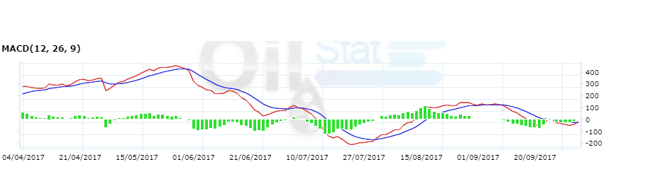 Рынок находится в падающем тренде на протяжении 15 дней. Индикатор MACD поддерживает тренд.