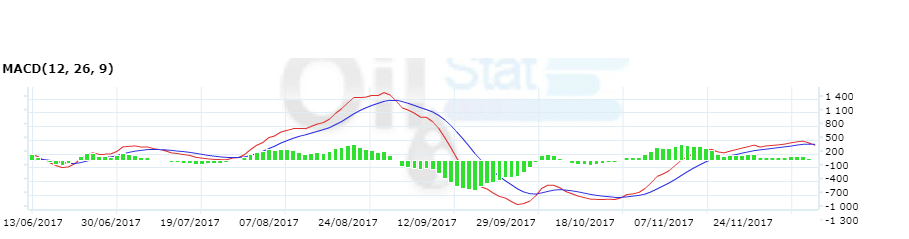 Рынок находится в растущем тренде на протяжении 27 дней. Индикатор MACD поддерживает тренд.