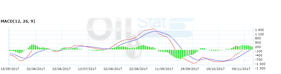 Рынок находится в растущем тренде на протяжении 9 дней. Индикатор MACD  поддерживает тренд.