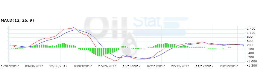 Рынок находится в падающем  тренде 1 день. Индикатор MACD поддерживает тренд.