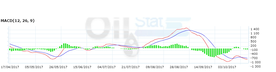 Рынок находится в падающем тренде на протяжении 6 дней. Индикатор MACD поддерживает тренд.