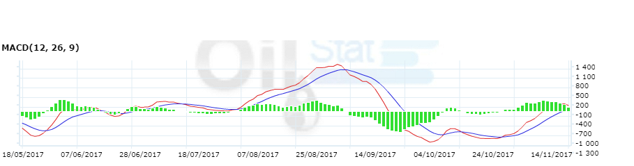 Рынок находится в растущем тренде на протяжении 12 дней. Индикатор MACD поддерживает тренд.