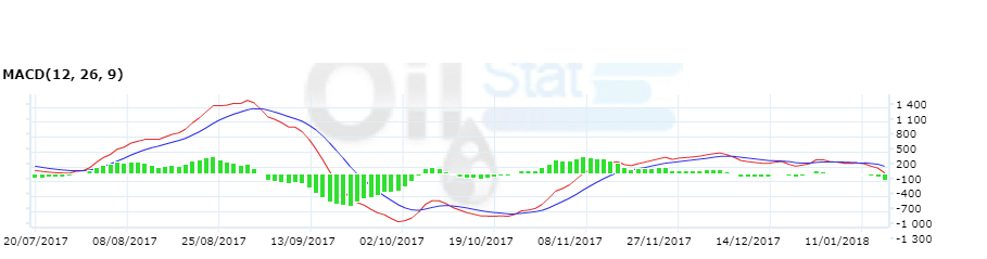 Рынок находится в падающем тренде 3 дня. Индикатор MACD поддерживает тренд.