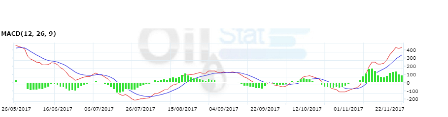 Рынок находится в растущем тренде на протяжении 16 дней. Индикатор MACD  поддерживает тренд.