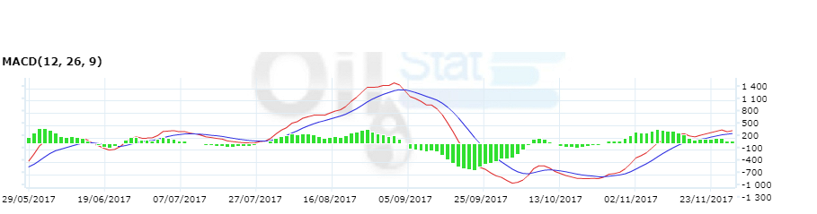 Рынок находится в растущем тренде на протяжении 18 дней. Индикатор MACD  поддерживает тренд.