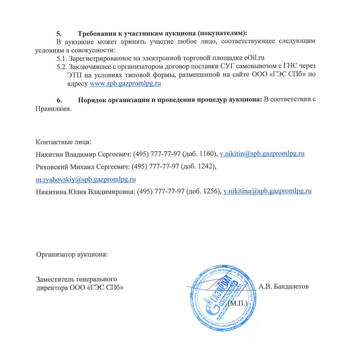В аукционе может принять участие любое лицо зарегистрированное на ЭТП eOil.ru и заключившее с организатором договор поставки СУГ самовывозом с ГНС.