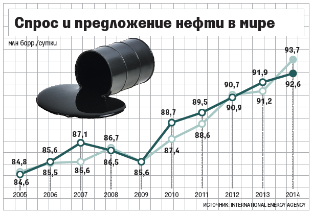 Предложение нефти растет стремительно и избыток уже достиг 3 млн барр./сутки, отмечало МЭА в августовском отчете. По расчетам агентства, излишки на рынке начнут сокращаться лишь во второй половине 2016 г.: добыча в странах, не входящих в ОПЕК, сократится почти на 500 000 барр./сутки до 57,7 млн барр./сутки и это будет самое масштабное ее падение с 1992 г.