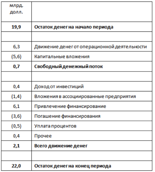 «Газпром» публикует только «непрямой» отчет о движении денежных средств, а информация по балансовым счетам слишком скудная, чтобы можно было самостоятельно нарисовать этот отчет. Поэтому приходится довольствоваться опубликованной информацией: