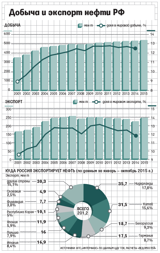 Но начавшийся год назад налоговый маневр сделал экспорт нефти гораздо выгоднее нефтепереработки, говорит директор Small Letters Виталий Крюков. Поставка нефти на НПЗ в 2015 г. упала на 1% до 281,847 млн т, приводит «Интерфакс» данные ЦДУ ТЭК. В условиях низких цен на нефть и особенностей налоговой системы маржа переработки сократилась по сравнению с уровнями 2014 г. примерно вдвое, добавляет Борисов. Кроме того, в прошлом году российские нефтяники увеличили добычу на 1,4% до рекордного уровня в 534 млн т.