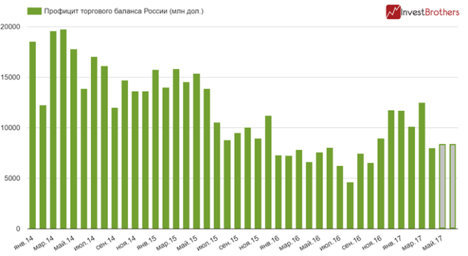 Согласно предварительной оценке за май и июнь российские компании поставили за рубеж товаров на 57,3 млрд долларов, а закупили на 40,5 млрд. Таким образом, за этот период среднемесячный профицит торгового баланса составил 8,4 млрд, а восстановление притока средств в страну прекратилось.