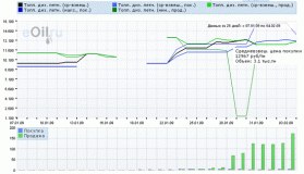 2 февраля на Торговой площадке eOil.ru стоимость дизтоплива летнего резко выросла. Так, стоимость продажи увеличилась на 414 руб./т. и составила 12 900 руб. за тонну, объем предложения вырос на 36,30 тыс. тонн до отметки 170,86 тыс. тонн. Средневзвешенная цена покупки уменьшилась на 250 руб./т. до уровня 12 967 руб. за тонну при сокращении объема спроса на 0,3 тыс. тонн до отметки 3,1 тыс. тонн.