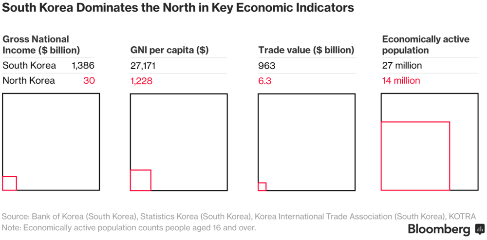 Центральный банк Южной Кореи предупредил, что дальнейшее расширение ядерного вооружения Пхеньяна фактически способствует инвестициям и производству и может увеличить рост ВВП на Севере полуострова. Однако экономический разрыв с Южной Кореей, тем не менее, остается огромным, а решениями Ким Чен Ына движет инстинкт выживания, а не обеспокоенность за судьбу северокорейской экономики.