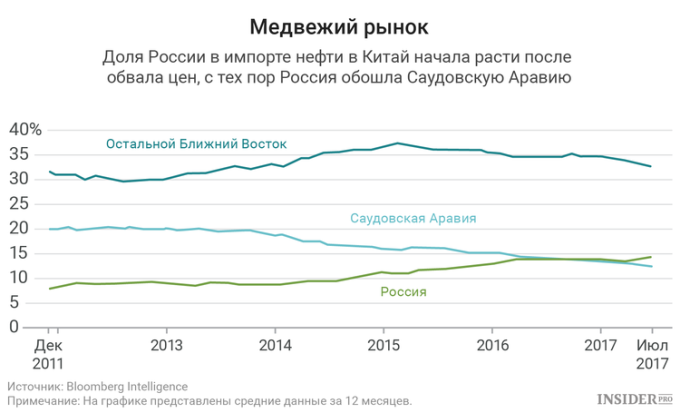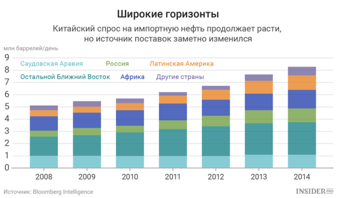 Вот как выглядела структура импорта нефти в Китай в последние годы: