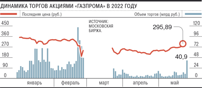 Котировки «Газпрома» 26 мая, в день заседания совета директоров компании по дивидендам, неожиданно рухнули в середине торгов на Московской бирже. В 13:41 буквально за минуту они обвалились почти на 13%, достигнув 245 руб. и фактически откатившись к значению недельной давности.
