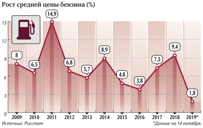 По данным Росстата, с начала этого года бензин подорожал на 1,8%. По итогам 2018-го его стоимость выросла на 9,4%.