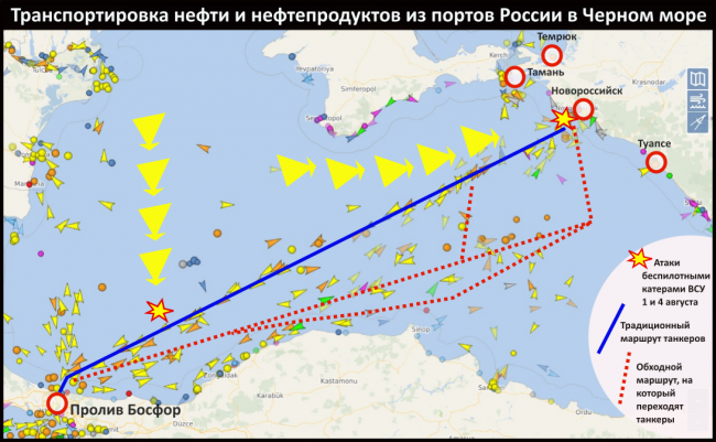 После выхода России из зерновой сделки и ударов киевского режима по российским кораблям в Черном море многие танкеры изменили маршрут пересечения Черного моря. Российскую нефть и нефтепродукты стараются везти в экономической зоне Турции. Для этого танкерам приходится делать крюк более 100 километров. Эксперты полагают, что Украина опрометчиво создает угрозу поставкам нефти, так как это грозит новым витком энергокризиса на Западе — подорожанием сырья на мировых рынках до $ 100 за баррель.