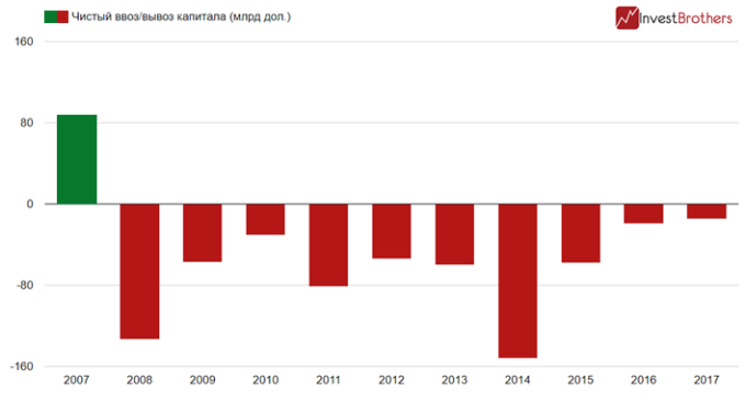 За последние 11 лет приток средств в нашу страну наблюдался лишь в 2007 г.