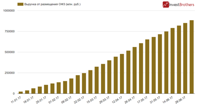 С начала года Министерство финансов выручило путем продажи ОФЗ 885,4 млрд рублей.