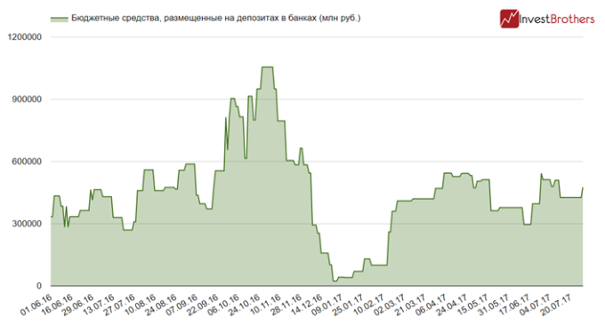 По состоянию на 31 июля на депозитах в кредитных организациях находилось 476 млрд рублей.