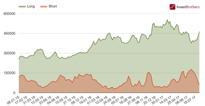Объем длинных позиций увеличился до 464 тыс. контрактов, прибавив за неделю 40 тыс. контрактов.