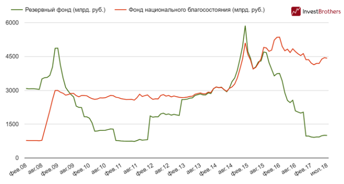 По итогам августа в Резервном фонде находился 1 трлн рублей, а в Фонде национального благосостояния – 4,4 трлн.