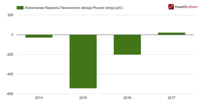 Ситуация с пенсиями остается довольно-таки напряженной. За 2016 г. дефицит средств составил 204 млрд рублей, в 2015 г. – 544 млрд. То есть, для финансирования дефицита фонду необходимо было покрыть сумму в 748 млрд рублей.