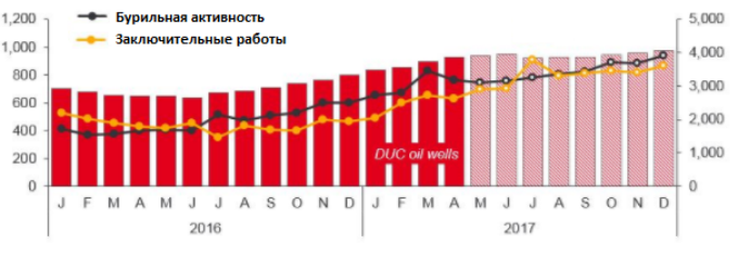 Возрождение бурильных работ произошло в середине прошлого года и тренд на увеличение будет продолжаться в течение всего 2017 г., несмотря на небольшую передышку. Также ожидается, что месторождение Permian продолжит обеспечивать большую часть прироста добычи на протяжении оставшихся 7 месяцев года.