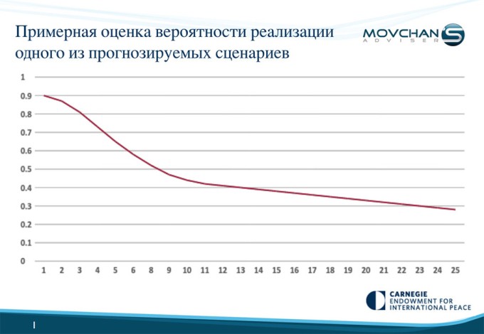 Вся практика экономического предсказания была сведена в двух гениальных работах. Одна работа сделана в Stratfor людьми Фридмана: прогнозы, как правило, противоположны результатам в 20-летнем периоде. Вторая работа проведена Чикагским университетом при моем участии: вероятность того, что на десятилетней перспективе реализуется хотя бы один из предложенных сценариев, составляет примерно 40%. Это значит, что в 60% случаев реализовывалось что-то совсем другое, а не то, что предполагали аналитики.
