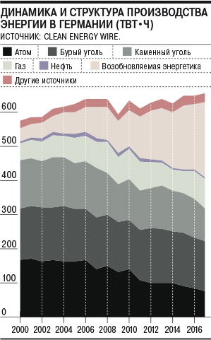 Одной из основных рыночных мер в ФРГ, призванных стимулировать развитие возобновляемых источников энергии (ВИЭ), были «встроенные тарифы», которые гарантировали инвесторам в течение 20 лет фиксированную цену €0,51 за 1 кВт•ч произведенной энергии. Производить и продавать энергию ВИЭ (главным образом солнца и ветра) смогли домохозяйства — в том числе объединяясь в энергетические кооперативы. В последние десять лет это привело к буму возобновляемой энергетики в Германии (см. график), превращая многие поселения из энергодефицитных в энергопрофицитные. По данным национального Агентства возобновляемой энергетики, в 2016 году домохозяйства владели 31,5% всей установленной мощности ВИЭ, еще 10,5% принадлежали фермерам. Энергокомпании владели только 15,7% мощности, еще 14,4% пришлись на застройщиков. Число же энергетических кооперативов увеличилось с 66 в 2001-м до 1 тыс. к 2015 году.