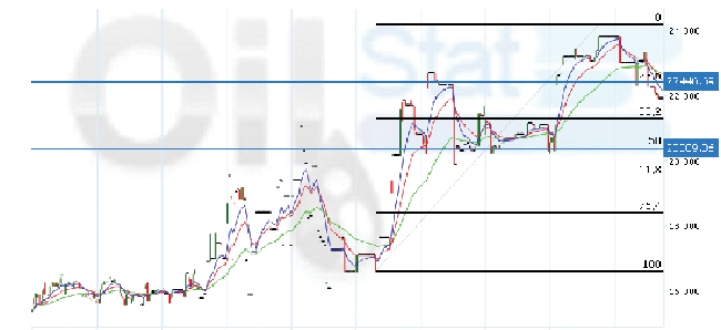 Стохастический индикатор данного индекса указывает на разворот рынка. Следующая поддержка – находится на уровне 20389 руб/тн. Сильное сопротивление на уровне – 22446 руб/тн.