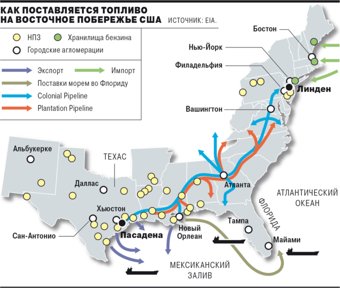 Стоимость бензина в США после хакерской атаки на трубопровод Colonial Pipeline, снабжающий топливом восточное побережье, приблизилась к максимумам ноября 2014 года. По данным Bloomberg, заправки в некоторых штатах уже сталкиваются с нехваткой бензина. Однако влияние инцидента в целом на рынок нефтепродуктов пока остается ограниченным — трейдеров успокаивают планы оператора трубопровода перезапустить его в конце недели.