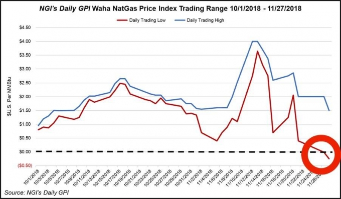 Последние новости из Соединенных Штатов Америки должны заставить вздрогнуть топ-менеджеров «Газпрома». В Техасе, родине крупнейшего бассейна сланцевой нефти Permian, цена на природный газ опустилась ниже нуля! Американские добытчики в конце ноября «продавали» это топливо по цене минус 25 центов, то есть, «приплачивали» его покупателям. Как такое вообще возможно в главной капиталистической сверхдержаве мира? И не значит ли это, что российский газовый монополист сам скоро пойдет по миру?
