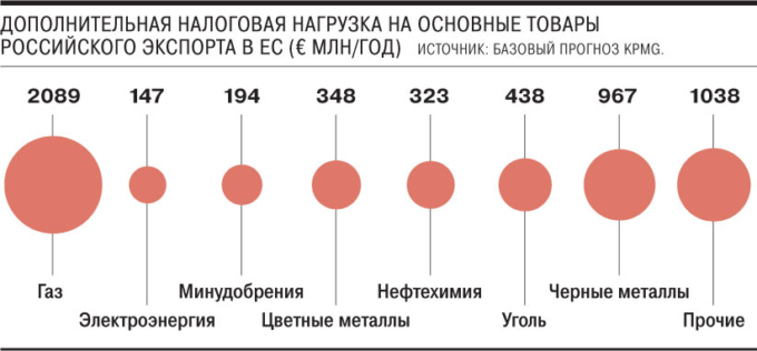 По разным оценкам, фискальная нагрузка на черную металлургию РФ в таком случае может увеличиться на €27–442 млн в год, на «Русал» — на €122–277 млн, на ГМК «Норильский никель» и УГМК — на €58–119 млн. Нагрузка на российских производителей энергетического угля может достигнуть €205–571 млн. Экспортеры нефтепродуктов могут быть вынуждены платить до €1 млрд.