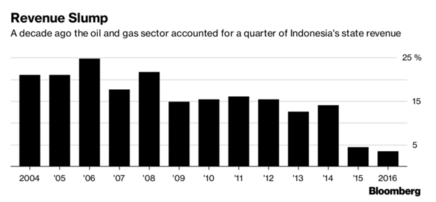 При росте экономики на 5% и развертыванию обширной правительственной инфраструктуры, присутствуют тревожные сигналы о сокращении нефтегазового сектора, который пять лет назад составлял почти 6% валового внутреннего продукта Индонезии, а в прошлом году внес только 3%.