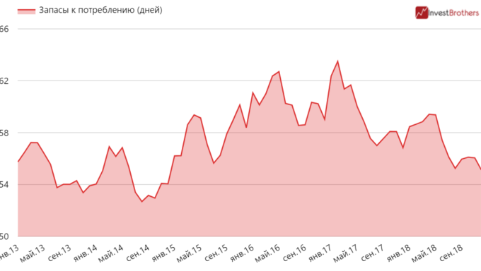 Однако по прогнозу Министерства энергетики США в 2018 г. объем запасов сократится до 55 дней потребления, что вернет этот показатель к уровням ниже среднего.