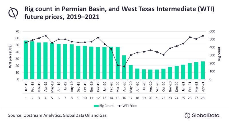 По состоянию на июнь 2021 года в Пермском бассейне работало 235 буровых установок по сравнению с 135 буровыми установками год назад в июне 2020 года. GlobalData ожидает, что нефтегазовые компании переориентируют свои основные активы в Пермском бассейне и увеличат объем работ по бурению и заканчиванию скважин.