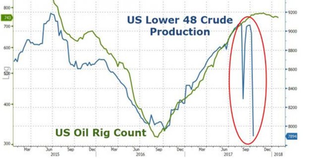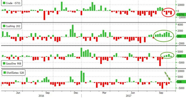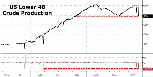 На этот раз не обошлось без сюрпризов. На этот раз стоит начать именно с добычи, так как она рухнули на максимальную величину за последние пять лет. Итак, добыча в США за прошедшую неделю сократилась на 12%, что, скорее всего, связано с ураганом «Нейт», из-за которого нефтяные компании, работающие в Мексиканском заливе, вынуждены были эвакуировать своих сотрудников и останавливать производство.