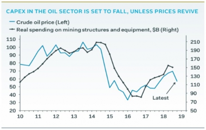 Эксперт Pantheon Macroeconomics также отметил, что капитальные затраты вне нефтяного и горнодобывающего секторов также резко замедлились в 2014–2016 гг. Сокращение капитальных затрат в этот период произошло в таких сегментах американской экономики, как производство спецтехники, промышленного оборудования, транспортных и логистических компаниях, а также жилой недвижимости и финансовом секторе в отдельных частях США, которые серьезно зависят от добычи нефти, а также капитальных затрат горнодобывающей промышленности.