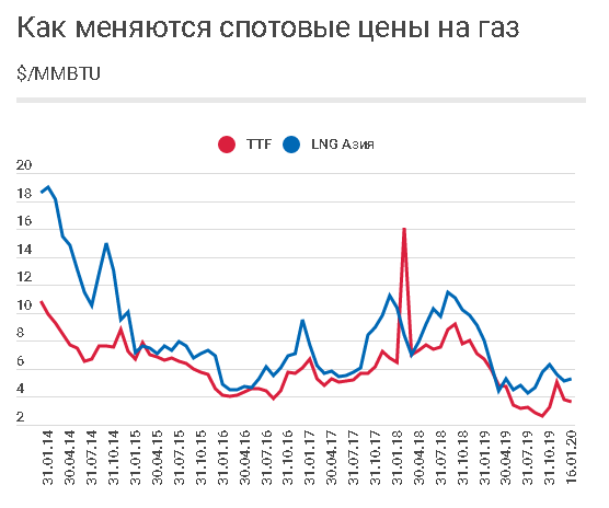 СПГ продается по долгосрочным контрактам и на спотовом рынке. На споте за шесть лет он подешевел примерно втрое. Сейчас в Европе СПГ стоит около $4/MBTU, в Азии – чуть выше $5/MBTU. Но по долгосрочным контрактам газ продается дороже. Например, в 2019 г. в АТР цены были на $5/MBTU выше спотовых, говорит Белова. Индия платит за СПГ по долгосрочному контракту с Катаром порядка $9/MBTU. В Японию и Китай газ по долгосрочным контрактам тоже поставляется примерно по $8–9/MBTU, добавляет аналитик энергетического центра бизнес-школы «Сколково» Сергей Капитонов.