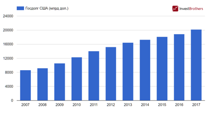 В пятницу госдолг Соединенных Штатов впервые в своей истории превысил сумму в 20 трлн долларов.