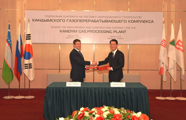 Частная нефтедобывающая компания «Лукойл» подписала с южнокорейской Hyundai Engineering соглашение о строительстве Кандымского газоперерабатывающего завода (ГПЗ) в Узбекистане мощностью 8,1 миллиарда кубометров в год, сообщает пресс-служба компании.