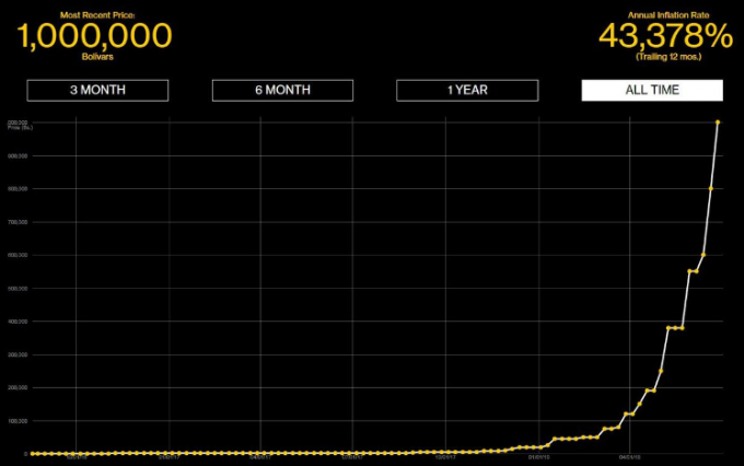 Индекс гиперинфляции в Венесуэле достиг отметки в 1 млн.