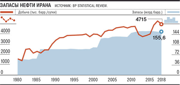 С этой точки зрения заявления Тегерана о росте запасов нефти выглядят политически мотивированными, так как страна в нынешних условиях не может монетизировать эти запасы и просто накапливает их. Так, подтвержденные запасы нефти в Иране на 2018 год, по данным BP, оценивались в 155,6 млрд баррелей (9% от мировых), тогда как добыча — 4,1 млн баррелей в сутки (5% от мировой). Для сравнения: запасы России оцениваются в 106 млрд баррелей (6,1% от мировых), а добыча в 2018 году составила 11,2 млн баррелей в сутки (13,5% от мировой). В случае США соотношение еще более показательно — запасы составляют 61,2 млрд баррелей (3,5% от мировых), а добыча (с учетом конденсата) — 11 млн баррелей в сутки (13,2% от мировой).