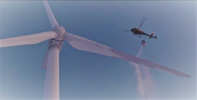«Разморозка» обледеневших лопастей ВЭС. Вертолётом обрабатывали те, что побольше… (1 из 5)