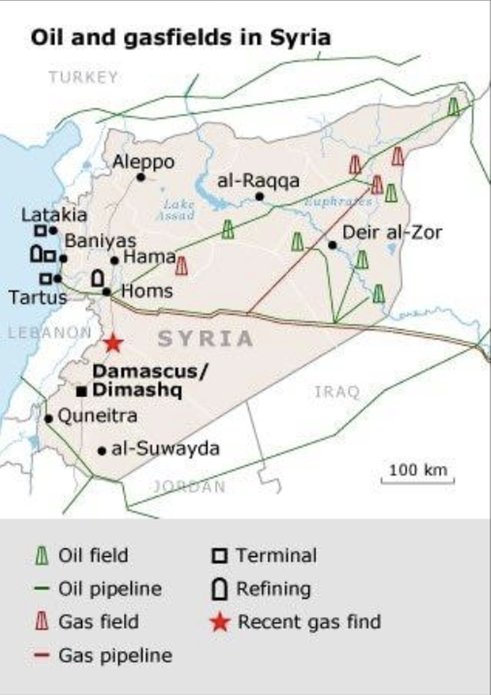 Турция также будет стремиться получить прямой доступ к сирийскому нефтяному месторождению Румейлан на северо-востоке, если захватит северо-восточную зону. Между ними Анкара и «Демократические силы Сирии», получающие защиту военных США, которые могут начать контролировать до 90% сирийских нефтяных запасов на 2,5 млрд баррелей. Запасы нефти в Сирии, 2,5 млрд баррелей, довольно незначительны по сравнению с запасами Саудовской Аравии, 268 млрд баррелей. Сейчас «Демократические силы Сирии» продают сирийскую нефть по цене около $30 за баррель