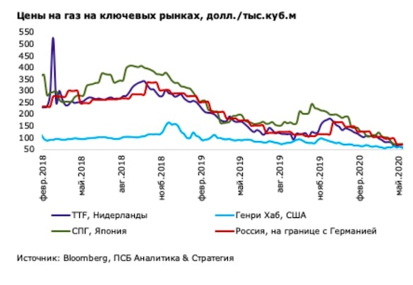 Новая порция предложения приведет к тому, что рынок газа останется разбалансированным и после окончания пандемии, предупреждает Промсвязьбанк. Среднегодовые цены на газ в Европе в этом году составят порядка 100-110 долларов за тысячу кубометров. На цены, как 2018 году, — 245 долларов в Европе и 386 долларов в Азии — рассчитывать пока не приходится, добавляют в банке.