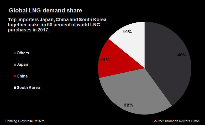 Япония, Китай и Южная Корея вместе составляют 60% мирового спроса на СПГ.