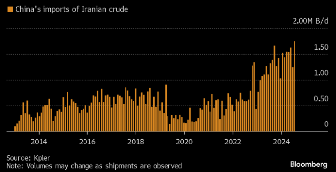По итогам августа объем импорта Китаем нефти из Ирана, судя по всему, достигнет рекордных 1,75 млн б/д против 1,24 млн б/д месяцем ранее, пишет Bloomberg со ссылкой на данные Kpler. Предыдущий рекорд на уровне 1,66 млн б/д был установлен в октябре 2023 года.