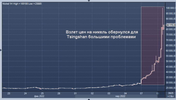 По данным Bloomberg, объем позиции Tsingshan составляет 100 000 тонн никеля, но она может быть и больше, если принять во внимание другие позиции, которые могли быть открыты через посредников. Компания изо всех сил пытается оплатить маржинальные требования, чтобы избежать принудительного закрытия позиций.